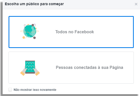 A primeira coisa que deve fazer nessa ferramenta é decidir se as avaliações serão baseadas em todos os usuários do Facebook ou se o Audience Insights deve considerar apenas pessoas conectadas à sua Fan Page.