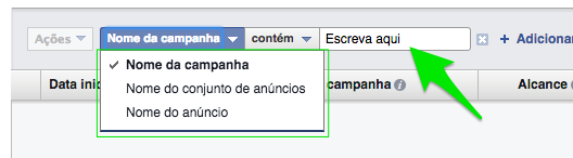 Depois selecione a campanha, o anúncio ou o conjunto de anúncios que vai pesquisar.